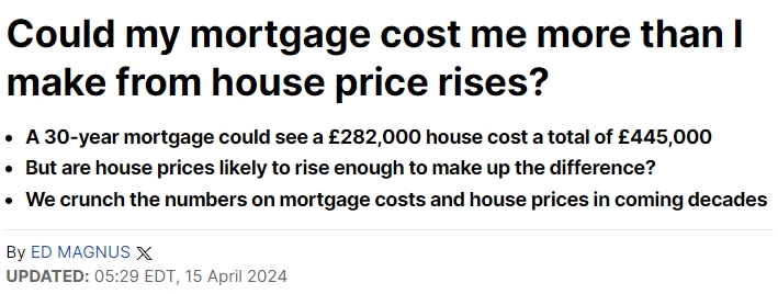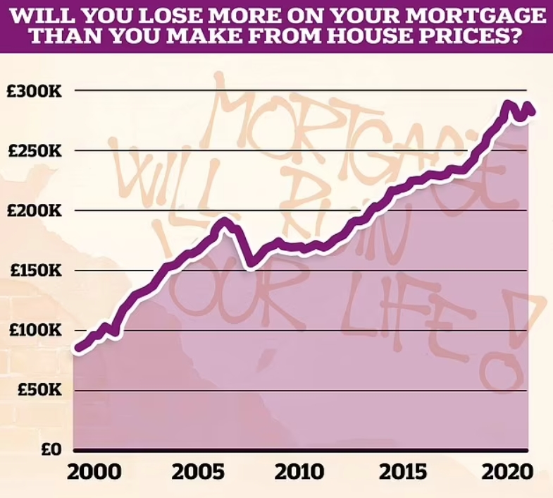 Finder表示,目前英国房屋的平均价格为281,913英镑,如果用30年期抵押贷款购买这套房屋,最终将在房屋和抵押贷款上花费445,000英镑。