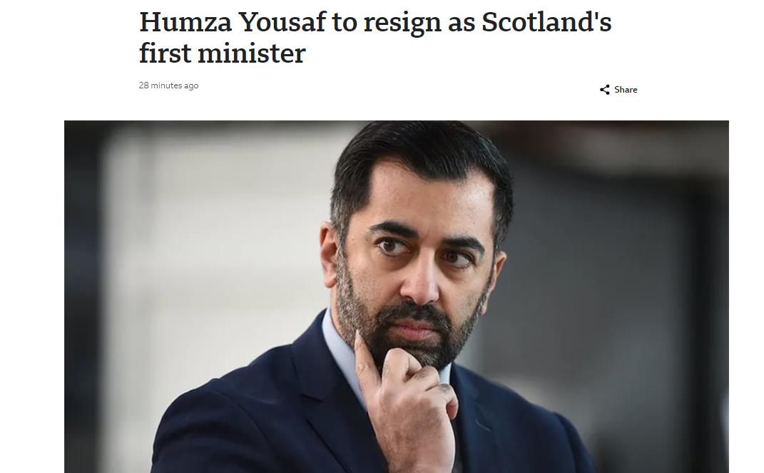 - 苏格兰政坛发生巨震,Humza Yousaf将辞去苏格兰首席大臣一职…
