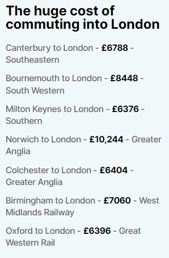 然而,由于往返伦敦的通勤车票价格上涨,最高可达1万英镑,这使得省钱的机会完全消失了。