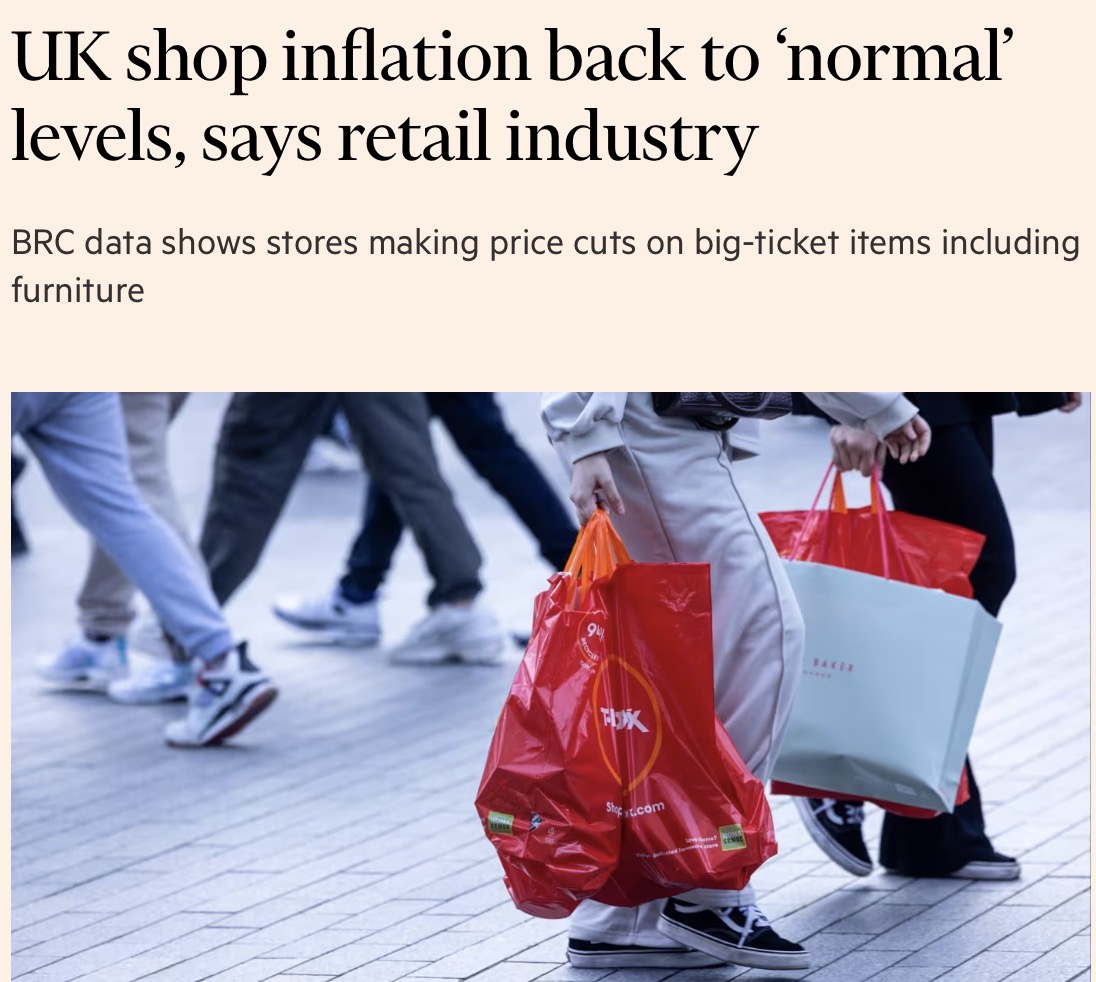 - 英国零售商协会的数据显示:英国的物价上涨回到了“正常”水平。