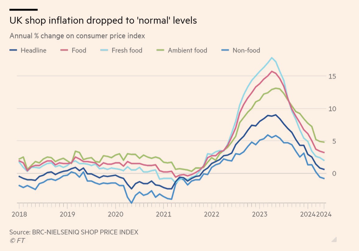 英国零售商协会的数据显示:英国的物价上涨回到了“正常”水平。