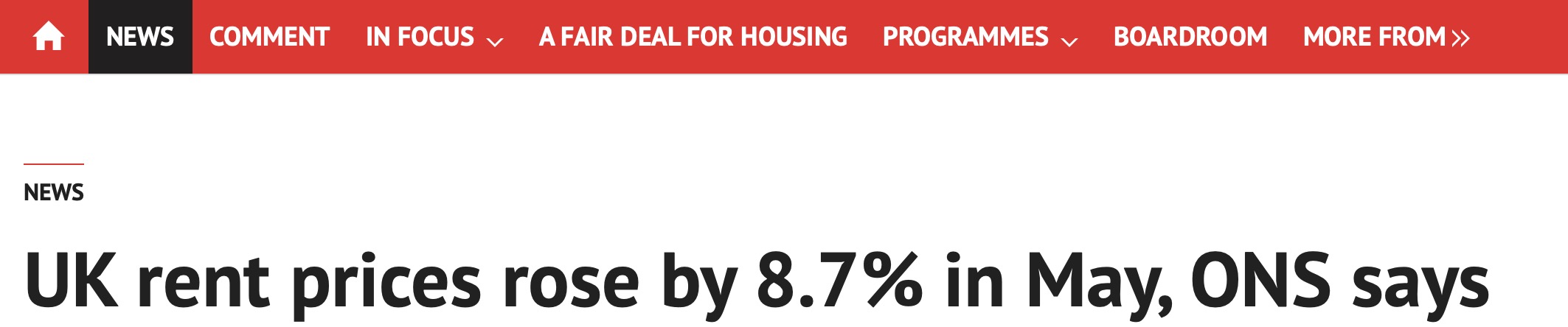 - 根据英国国家统计局的数据:截至 2024 年 5 月的 12 个月内,英国私人租赁部门平均租金价格上涨了 8.7%。
