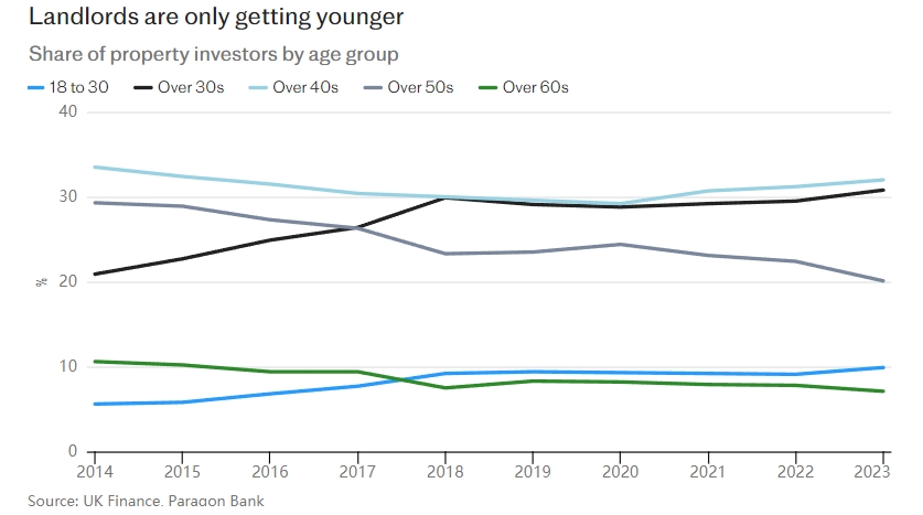 据Paragon的分析,过去十年,英国房东的平均年龄已从46.4岁下降至42.9岁。
