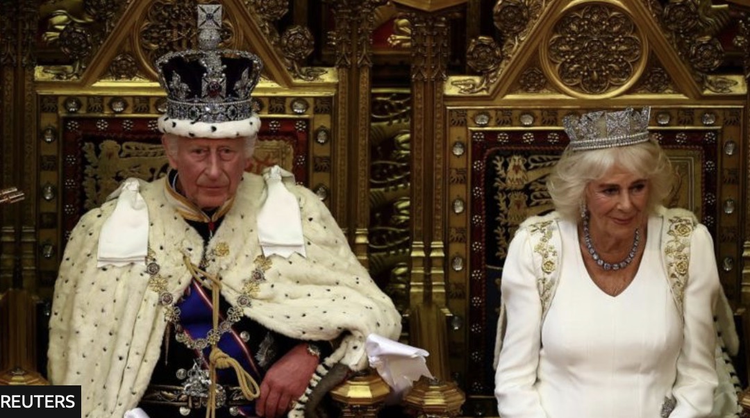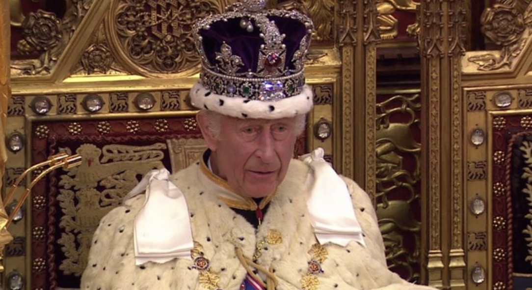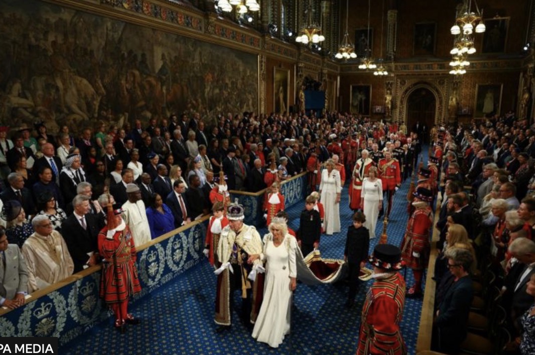 英国当地时间今天中午,英国国王查尔斯随王后从白金汉宫出发,来到上议院,为议会开幕发表了国王演讲。