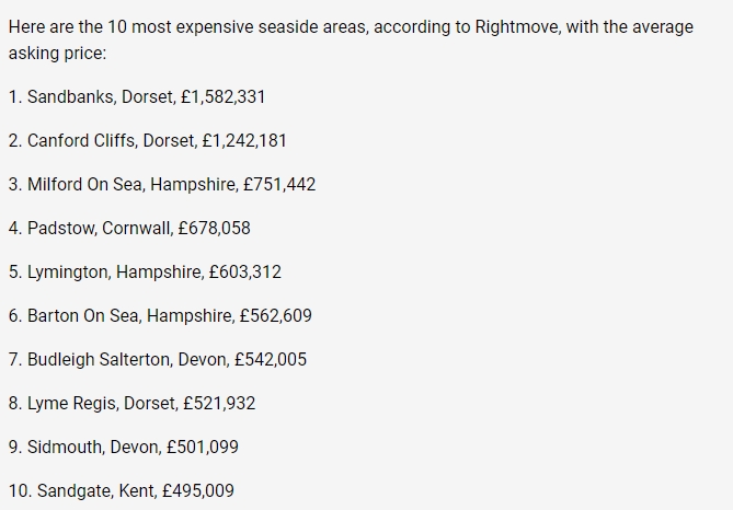 - Rightmove公布了英国最昂贵和最便宜的海滨热点,最贵的是多塞特郡的Sandbanks,最便宜的是艾尔郡的Saltcoats…