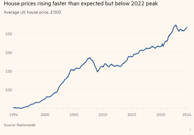最新数据显示,英国年度房价涨幅已回升至2022年12月以来的最高水平。