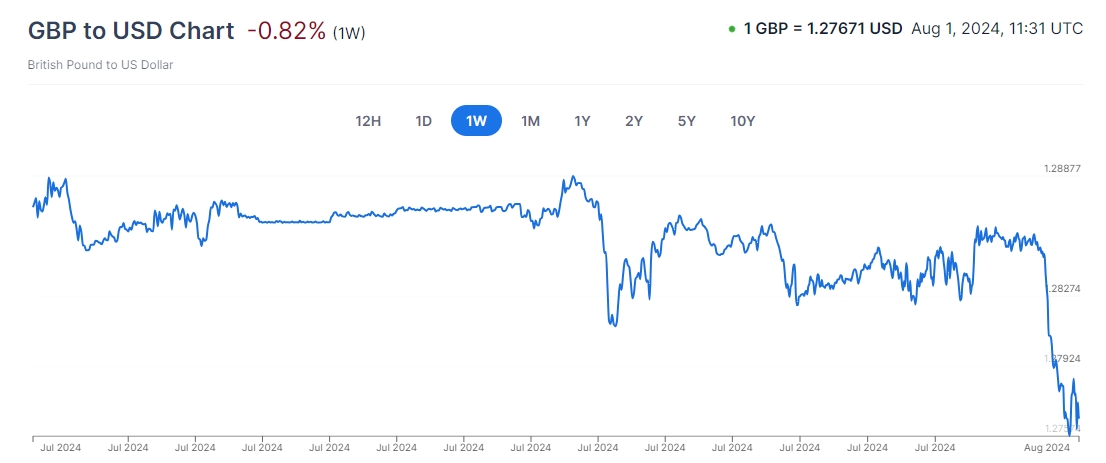 在英国央行宣布四年来首次降息后,英镑进一步下跌。
