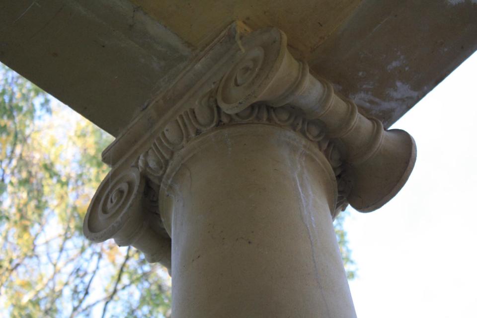 门口两个大柱子,别具一格