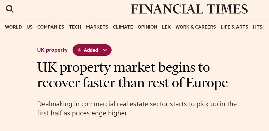 - 尽管过去两年受到了高利率的影响,但目前英国商业地产市场复苏速度远快于欧洲其他地区…
