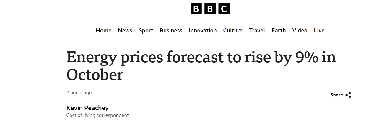 【10月份能源价格预计将上涨9%】