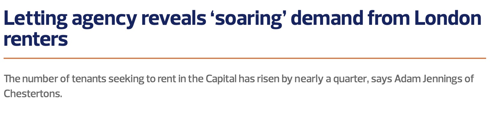 伦敦的租赁需求飙升,寻求在伦敦租房的租户数量增加了近四分之一。