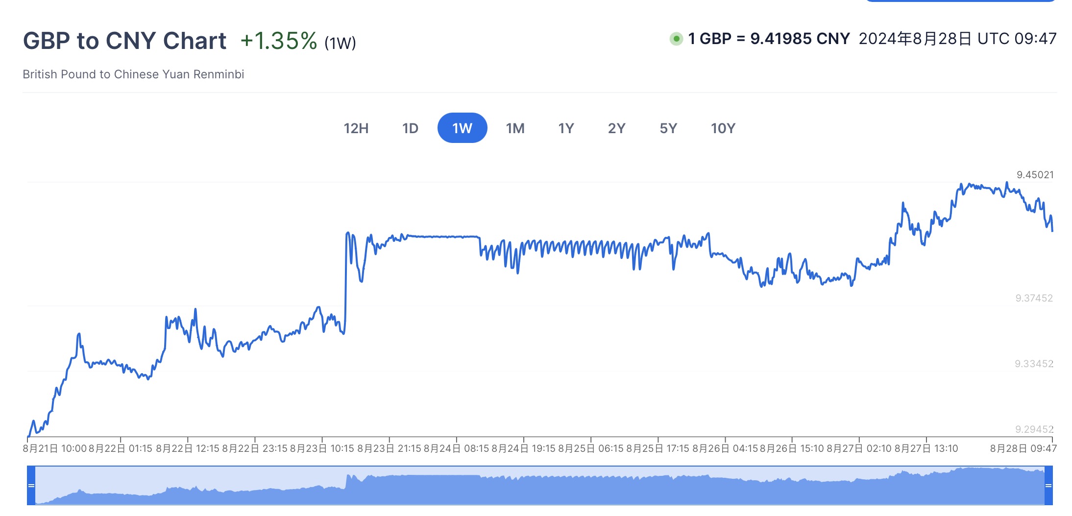 目前,英镑兑换人民币汇率为1 GBP = 9.41985 CNY