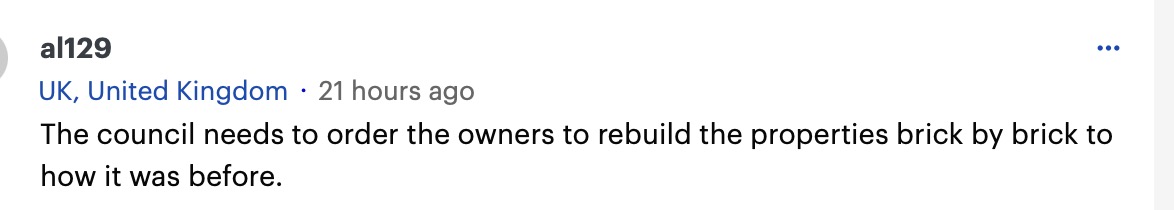 当地政府需要命令业主一砖一瓦地重建房屋,使其恢复到原来的样子。