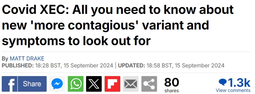 在XEC毒株出现之前,卫生专家曾警告称FLiRT变种正在席卷英国。