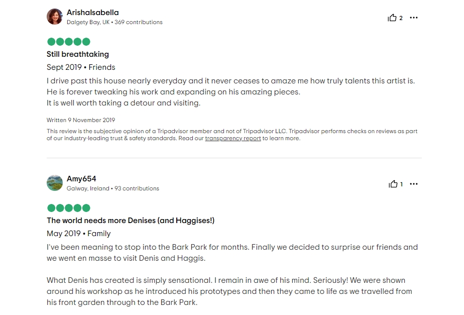 据说,Denis的花园的确在TripAdvisor上被当做景点列出,并且截至2020年,大多评价都不错,很多人也在赞叹Denis的创意和才华!