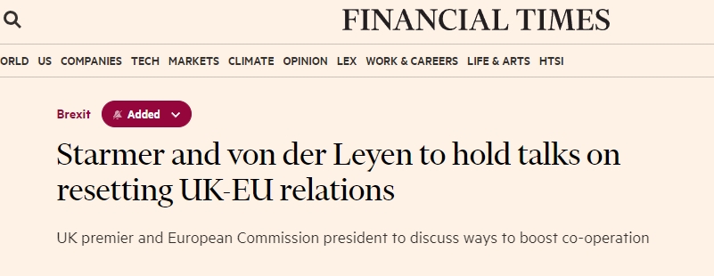 - 英国首相基尔·斯塔默将于下周会见欧盟委员会主席,就“重启”双方关系进行谈判…