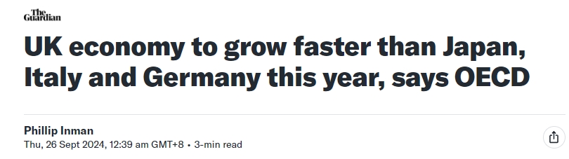 - 经合组织上调今年英国经济增长预期,预计英国经济增长将超过日本、意大利和德国…
