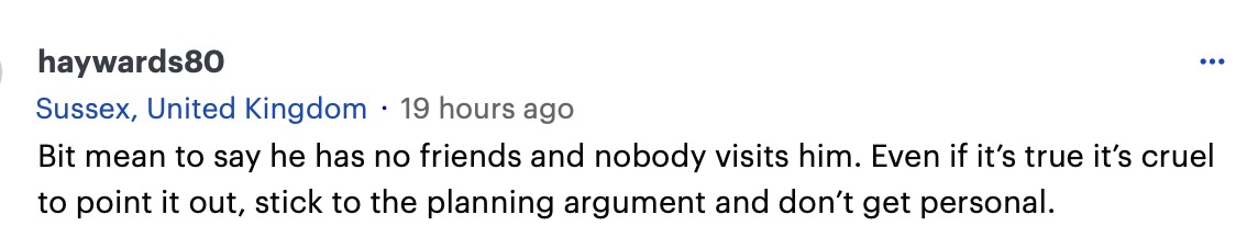说他没有朋友,也没有人去拜访他,未免有点刻薄。即使这是真的,指出这一点也很残酷,规划争执的问题,不要针对个人。