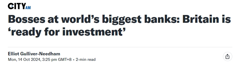 据悉,十多位企业高管今天在媒体发表联名文章,表示对英国经济的未来感到乐观,并指出现在是“投资英国的时候了”。