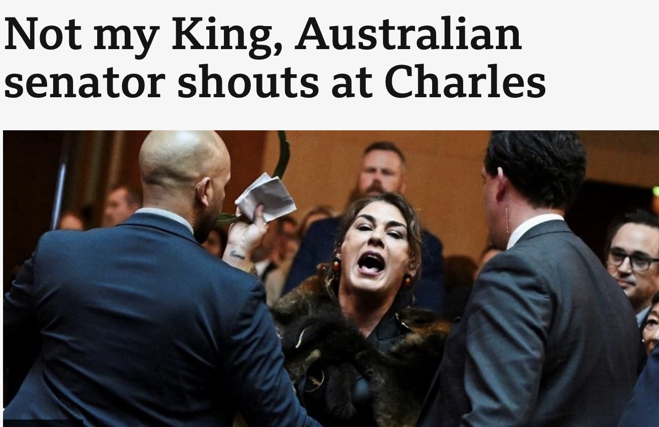 据英媒报道,在澳大利亚正式访问的第二天,查尔斯国王在国会大厦发表完演讲后,就遭到了一名参议员的大喊——“你不是我的国王”。