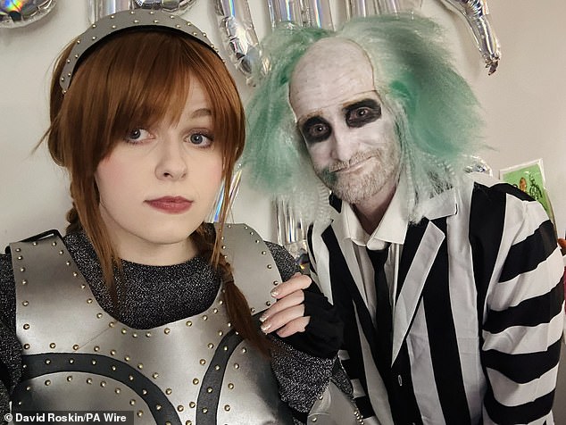 来自伦敦的David Roskin和朋友Fae 装扮成受欢迎的 Tim Burton 角色和 Good Luck Babe 歌手。