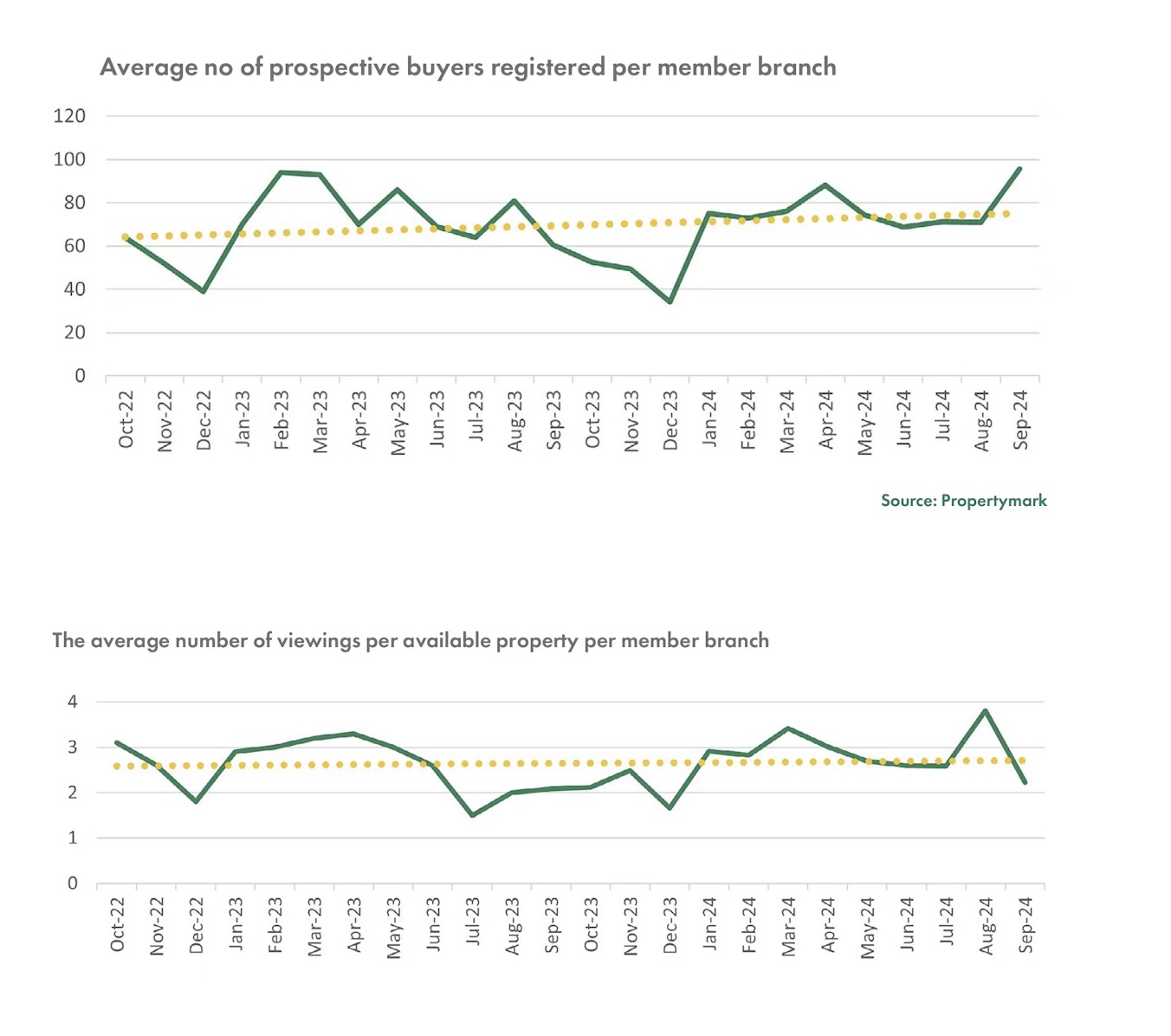 该机构称,9月份(在秋季预算公布之前)买家需求强劲增长。每个Propertymark分支机构注册的新潜在买家平均数量攀升至96人,创下两年来的新高。