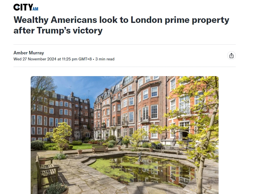 “过去12-24个月里,美国人在伦敦的表现非常亮眼,在特朗普获胜后,预计2025年美国买家需求还将进一步增长。”