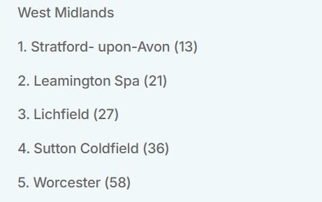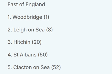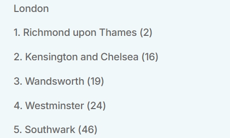 由于这些优势,Woodbridge击败了去年位于榜首的伦敦泰晤士河畔里士满(Richmond upon Thames),成为了今年的第一名。