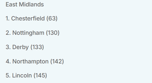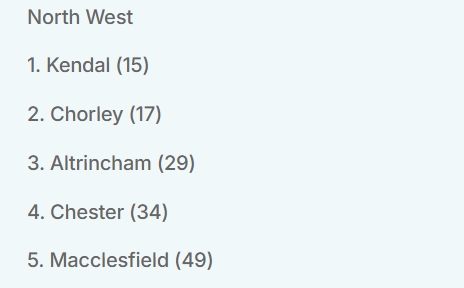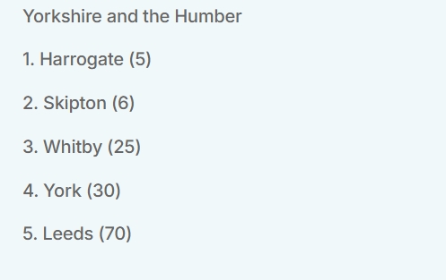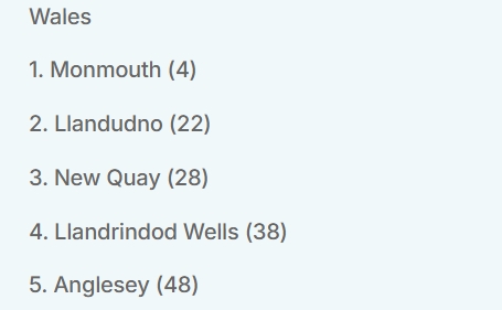 排在第三位的则是诺森伯兰郡(Northumberland)的Hexham。