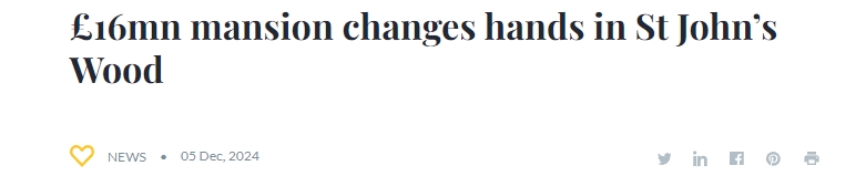 - 有国际买家斥资近1,600万英镑,购得伦敦St John’s Wood一栋出色的家庭住宅…