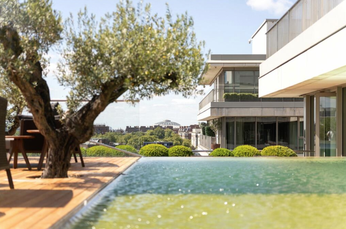 露台设计精美,错落有致,不仅设有户外用餐区,更关键的是旁边还有一个漂亮的无边泳池。一边在水中畅游一边欣赏伦敦美景,简直不要太惬意!