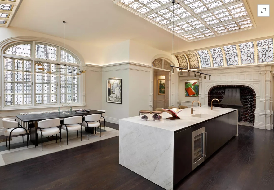 其面积为9,437平方英尺,共有五间卧室和五间浴室,相比于第一套略显复古的风格,这套的装修更加现代化。
