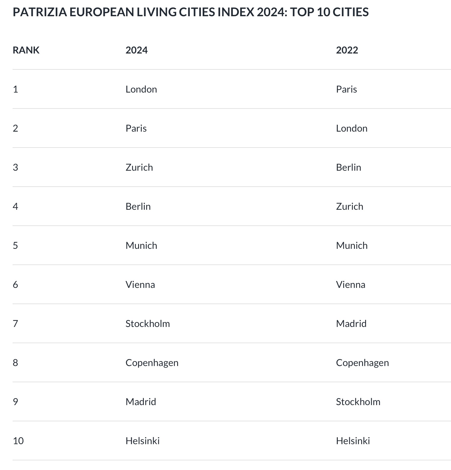 这次排名中,伦敦重回第一名,取代了2022年的榜首城市巴黎,后者排名第二。