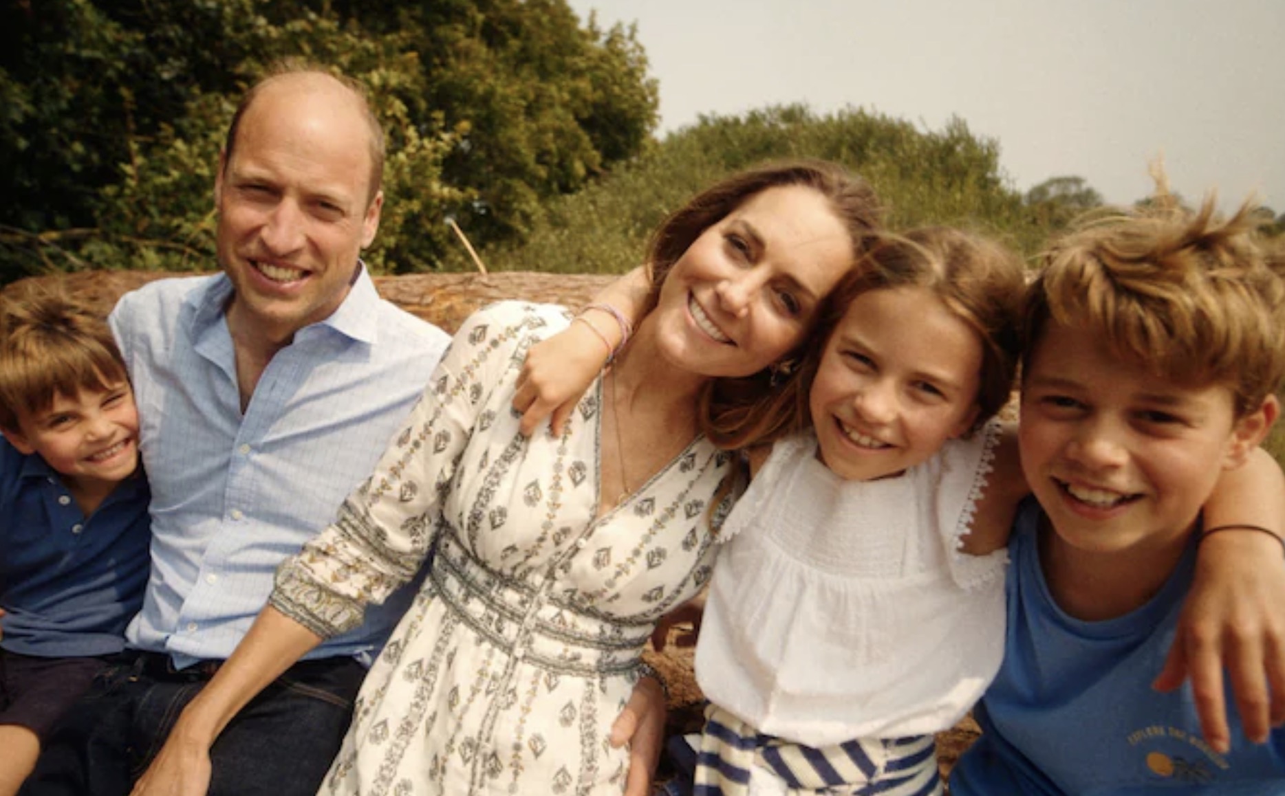 - 威廉和凯特发布了今年的圣诞贺卡,贺卡上展示了一家五口在诺福克海滩上的幸福时光。
