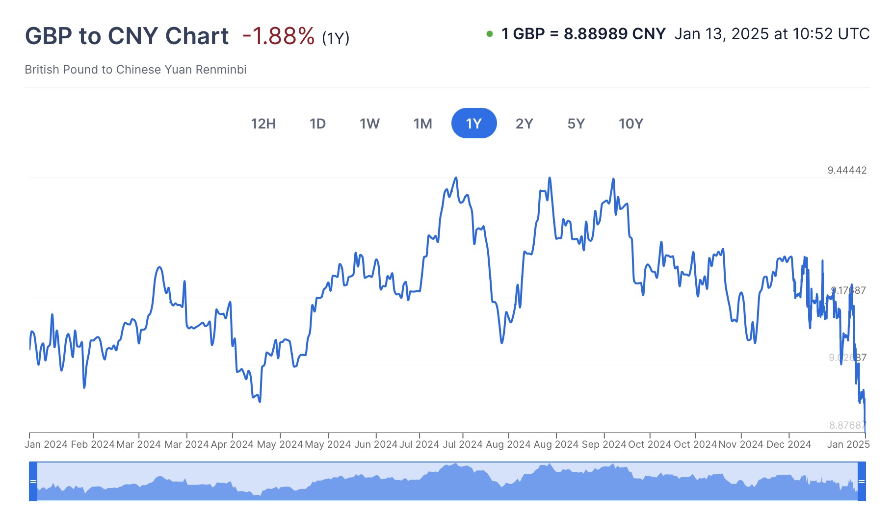 目前,英镑兑换人民币汇率为:1 GBP = 8.88989 CNY