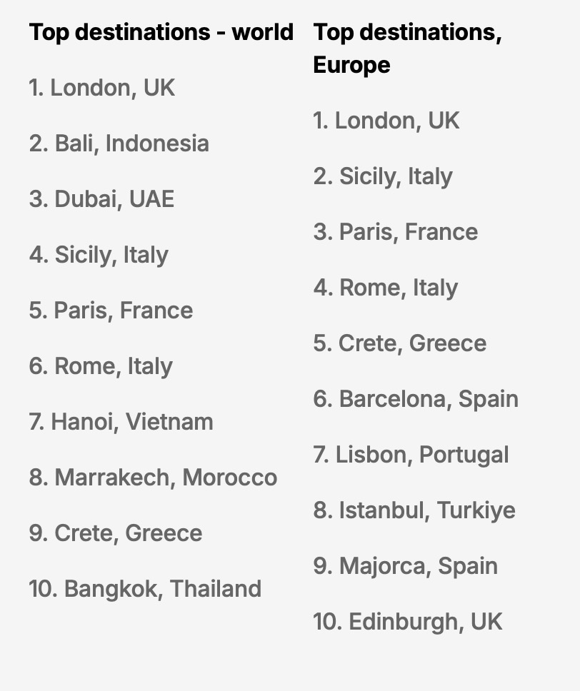 - 旅游平台Tripadvisor的最新排名中,伦敦被评为全球最佳旅游目的地。