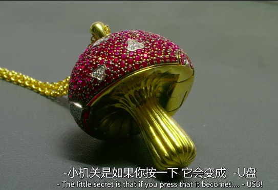 当然她还带着价值43000英镑的白金蘑菇USB