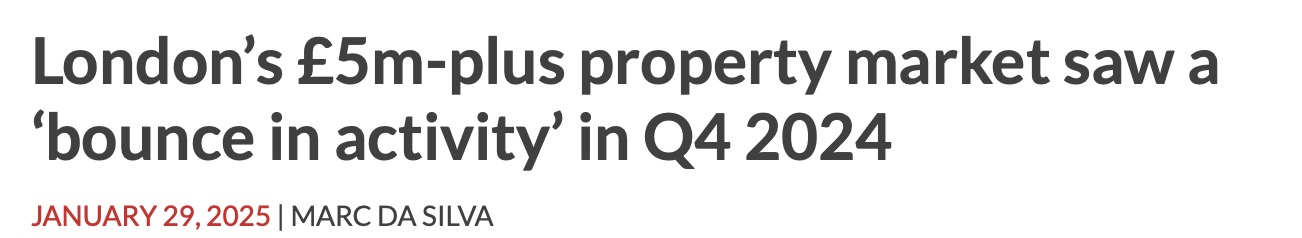 - 2024 年第四季度,伦敦 500 万英镑以上房地产市场出现“反弹”。