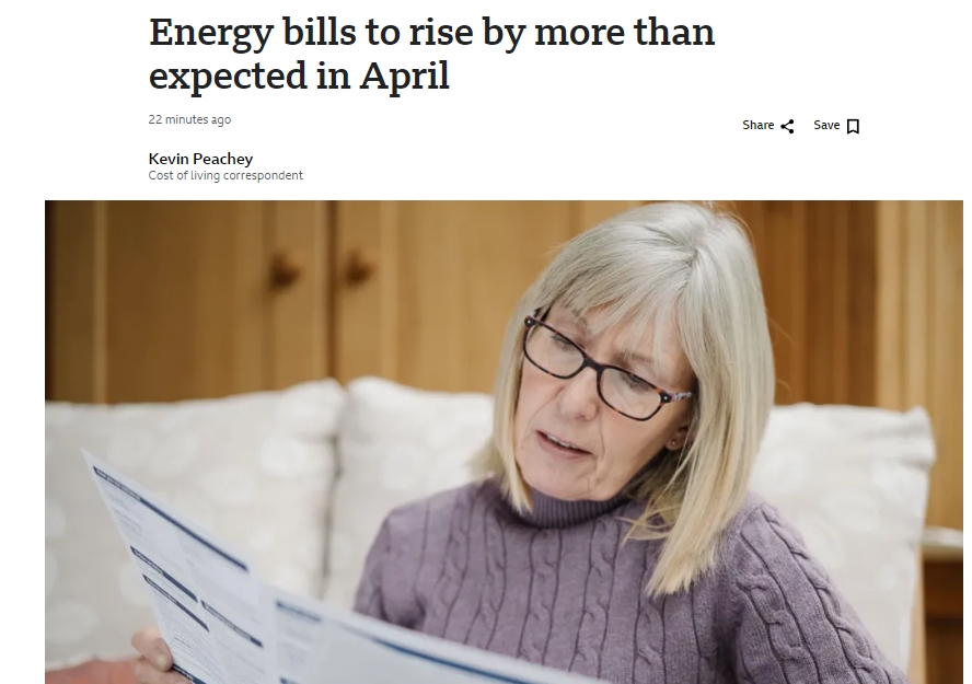 - 今年4月份起,英国普通家庭的能源费用平均每年将上涨100多英镑…