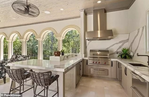 豪宅配有引人注目的酒吧和娱乐室、私人庭院泳池和水疗中心、夏季厨房以及两个户外休息区。