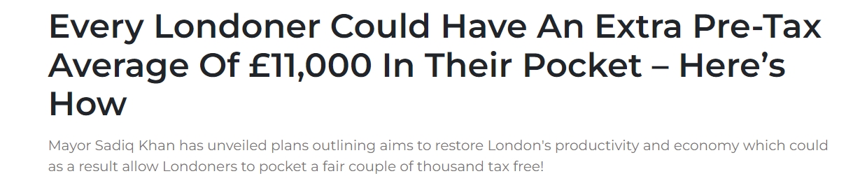 这项“加速”经济增长计划声称,它可以让每个伦敦人的口袋平均额外增加11,000英镑的税前收入。