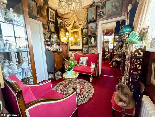 此外,公寓内还摆放着大量的画作和装饰品,其中一些被陈列在玻璃柜中。