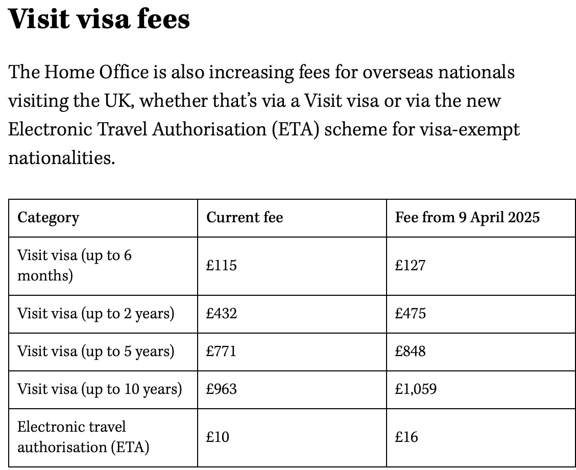 - 英国签证费用全面上调,2025年4月9日起实施新规。