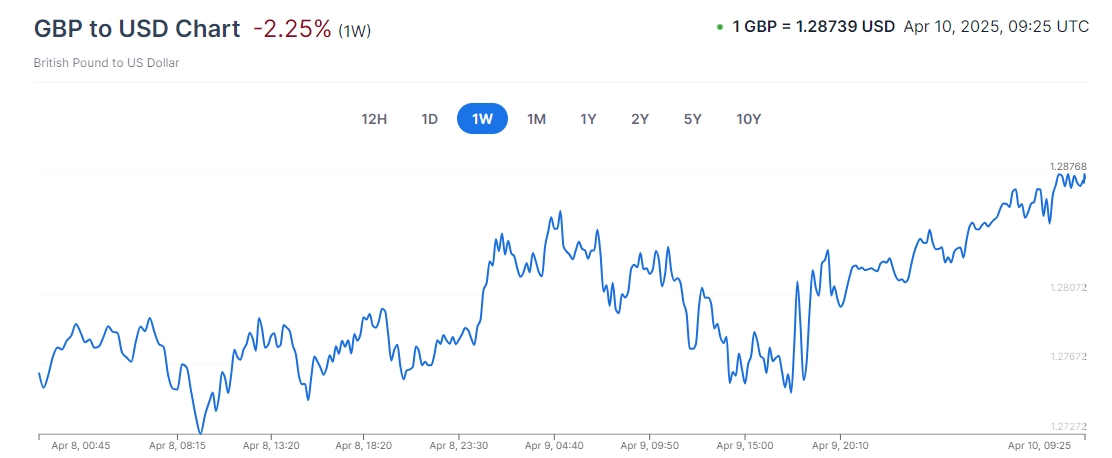 受这一消息影响,英镑兑美元汇率今日小幅上涨0.3%至1.28739: