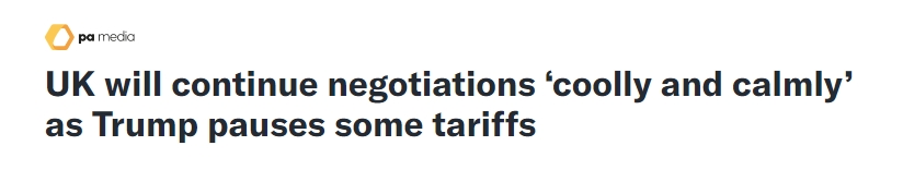 英国政府表示,在特朗普宣布对大多数国家暂停征收90天关税后,英国将“冷静地”继续谈判。
