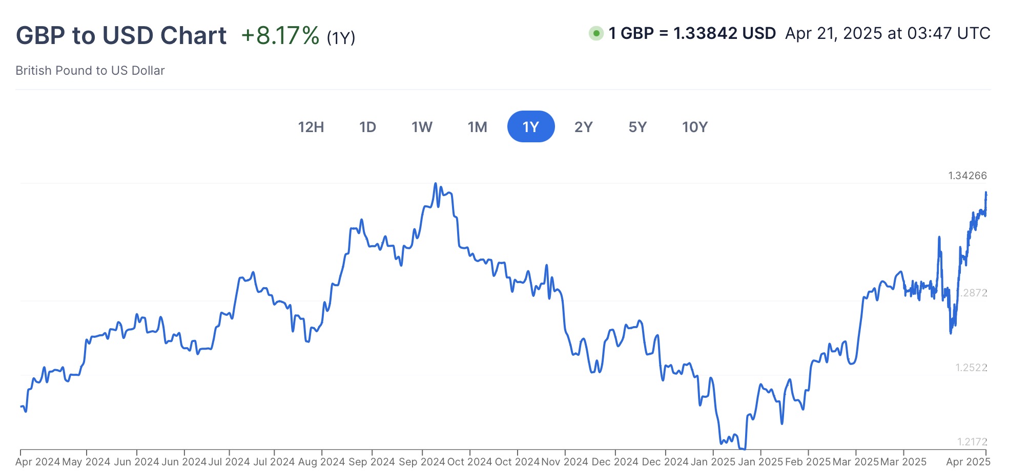 由于美国政府的贸易政策引发市场对经济放缓的担忧,美元持续走弱。投资者在避险情绪下,转向包括英镑在内的其他货币。这使得英镑兑美元汇率在过去几天内连续上涨,接近六个月来的高点。