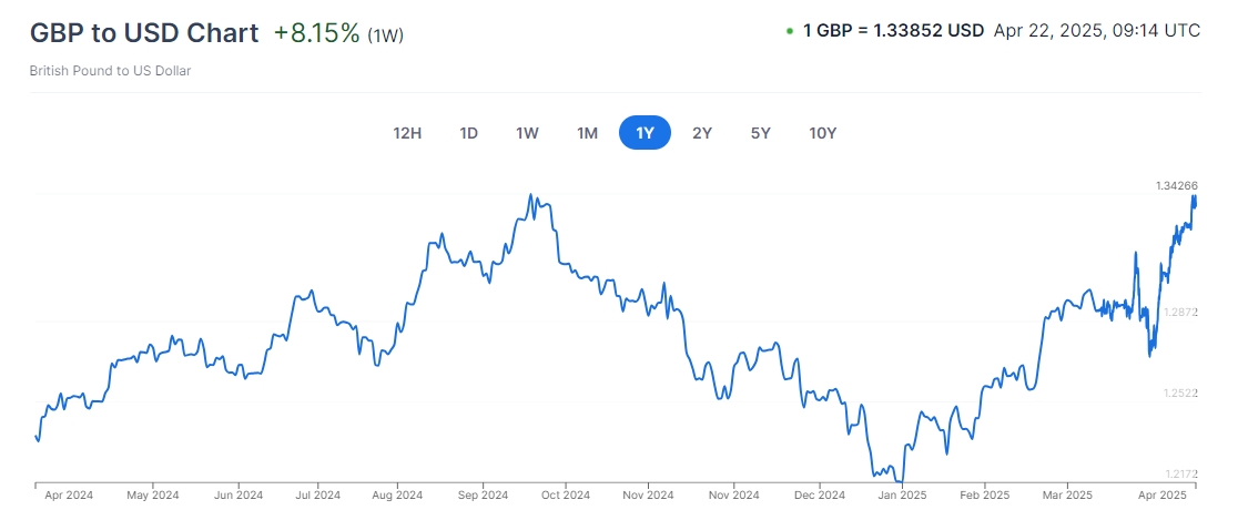 周二早盘期间,英镑一度触及1.342美元,截至本文撰写时小幅回落至1.33852。