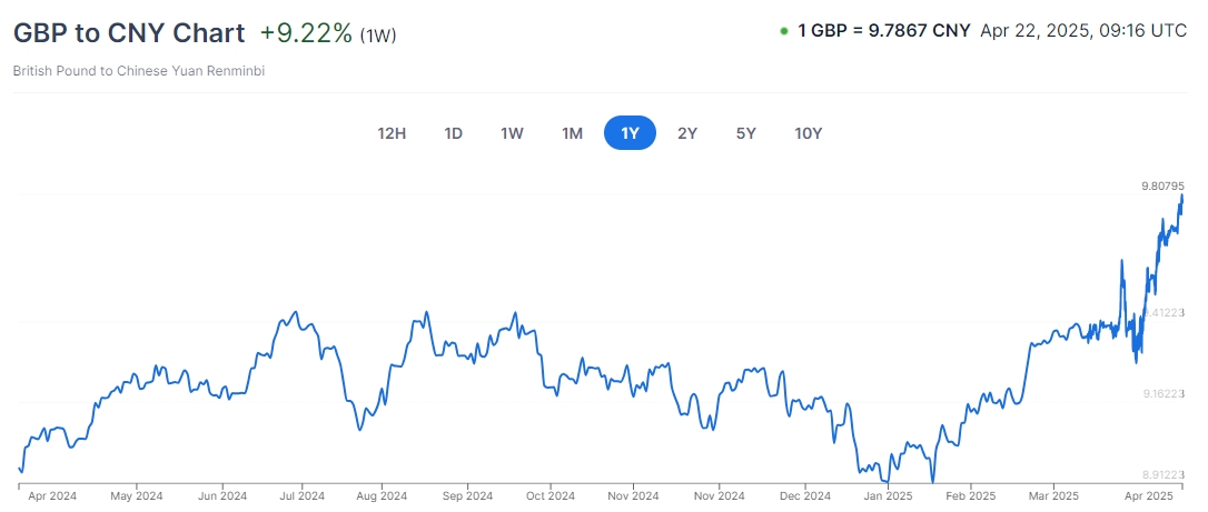 与此同时,英镑兑人民币汇率也升至9.7867的高位。