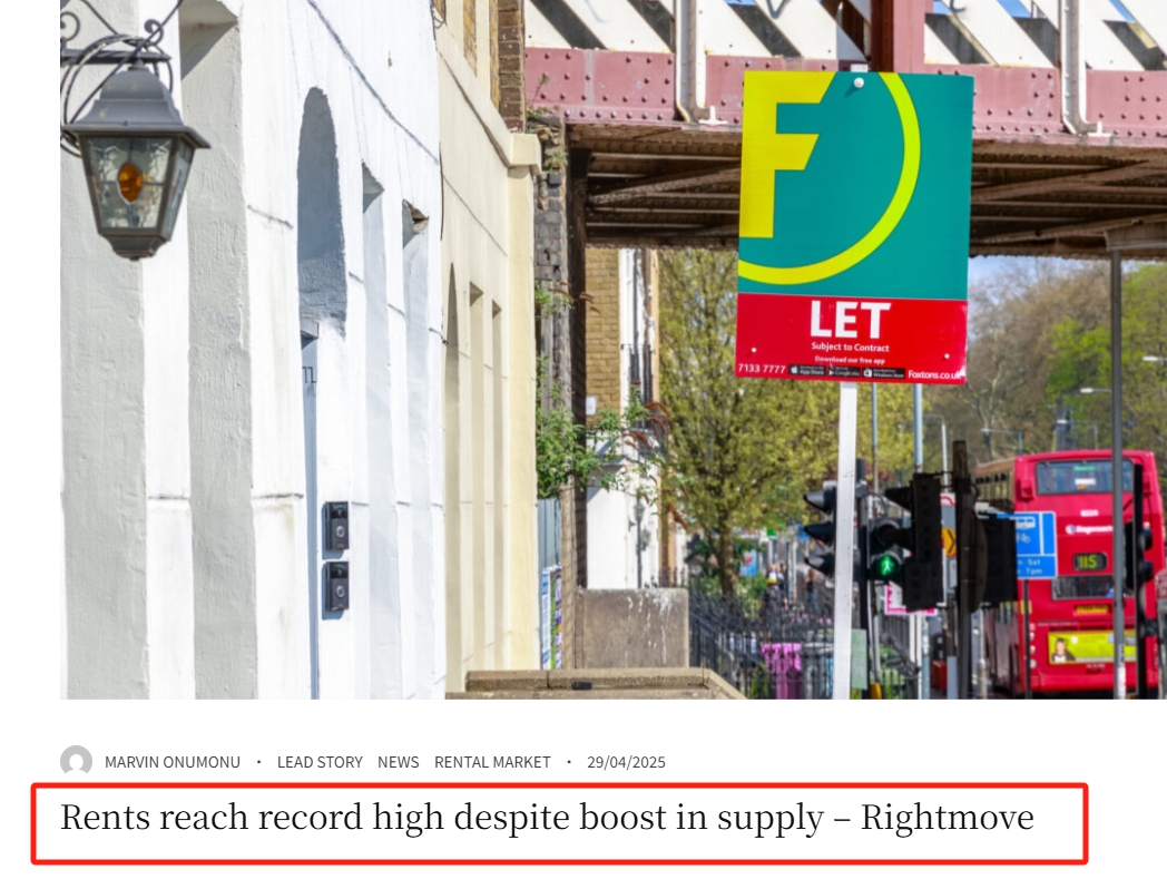 而自2020年以来,英国平均月租金已累计上涨40%,高于收入31%的涨幅。