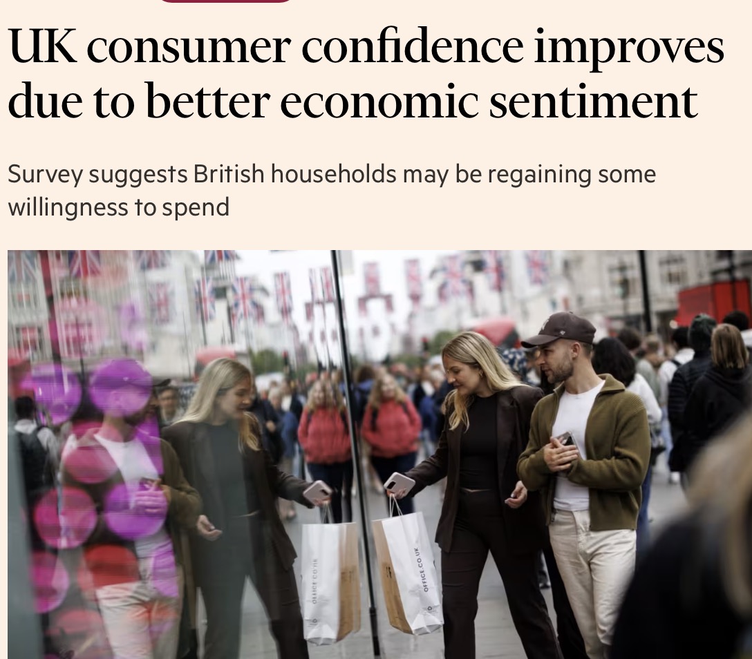 英国经济前景改善提振了消费者信心,5月消费者信心指数回升,几乎抵消了4月因关税引发的下滑,显示出更稳定的消费趋势。